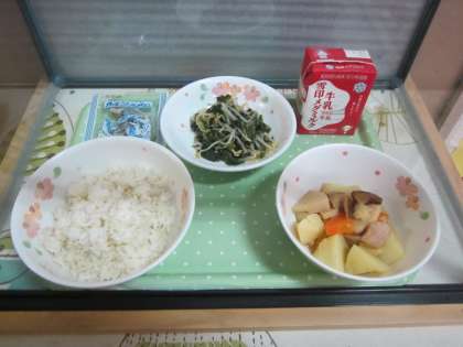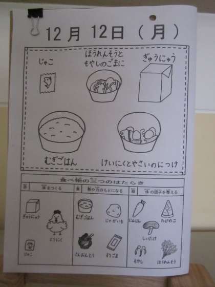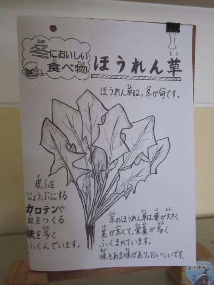 今日の給食には,ほうれん草があります。