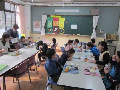 月1回の“縦割り給食”です。美味しくいただきましょうね。