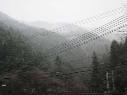 貴船の山は,雪に覆われています。