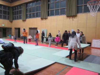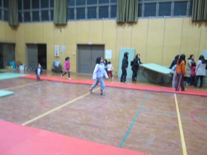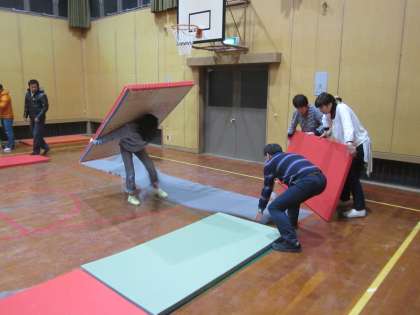 明日の『鞍馬柔道大会』に向けて,PTAコーラス後,56枚の畳を敷いてくださいました。