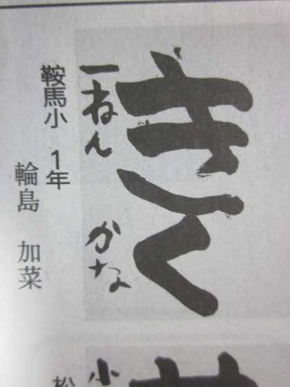 本日の京都新聞朝刊に,1年生児童の書写作品が掲載されていました。