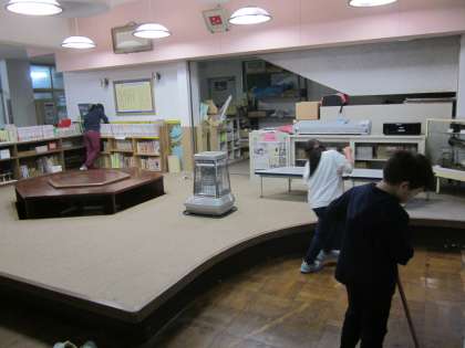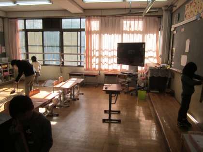 掃除時間の風景です。今年も頑張る鞍馬っ子です。