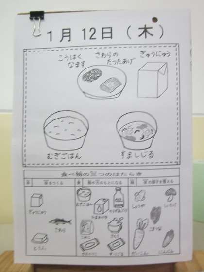 今日の給食に『紅白なます(正月のおせち調理)』があります。縁起が良いと言われています。