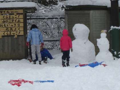 雪だるまを作る時,今朝(約30センチ)くらいの雪だと作りやすいですね。
