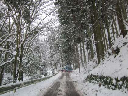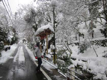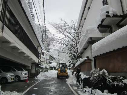 貴船街道では,除雪・倒木処理・電気関係復旧作業が行われていました。児童も除雪作業を手伝っていました。
