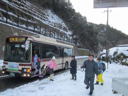 叡電が動かないので,貴船口バス停付近の除雪をしました。