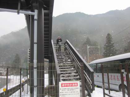 歩道橋には融雪剤を散布しました。