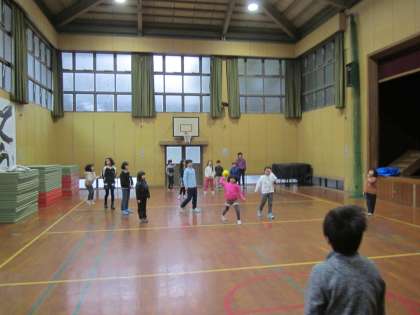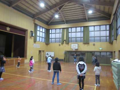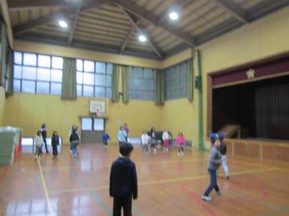 体育館で過ごしています。
