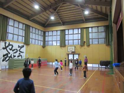 体育館の畳置き場の壁面には,教頭先生作の,大きな習字が!