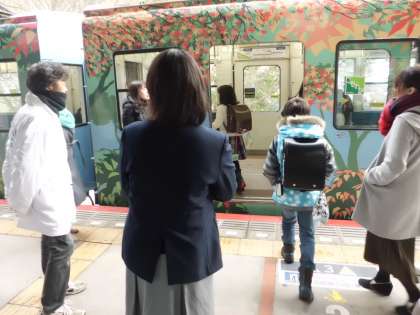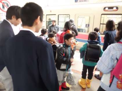 雪道を歩いて駅に向かいました。今日は中学生も見送りに来てくれました。
