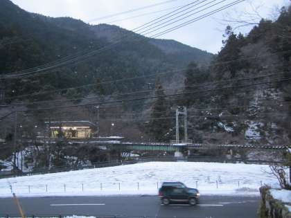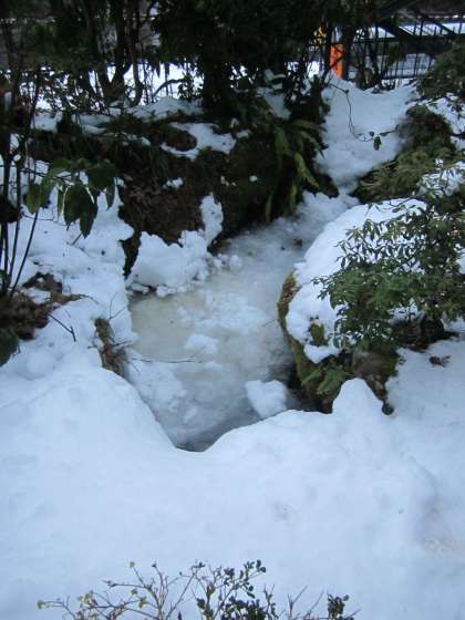 一旦融けた雪が,早朝はまた氷となっています。