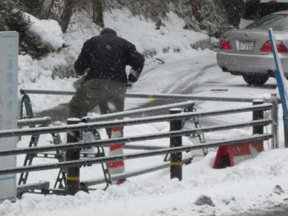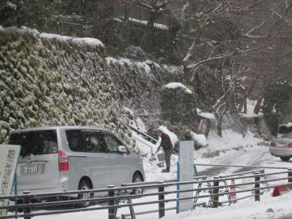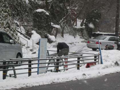 教職員で,ポイントごとに薬剤を散布しています。