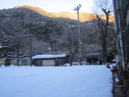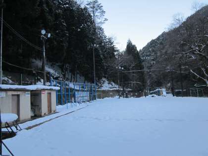 運動場はまだ真っ白です。今日は少し融けそうです。