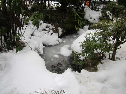 池は凍っています。