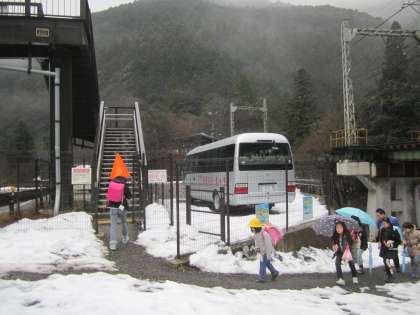 まだ通学路の端は雪が積もっています。