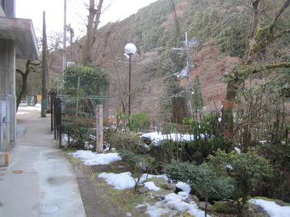 薄い氷が池を覆っていました。金魚はじっとしています。