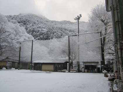 運動場には再び雪が積もっています。
