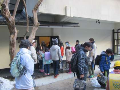 節分追儺式の帰りに,鞍馬山ケーブル様・鞍馬山保育園様にお礼を言いました。