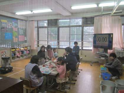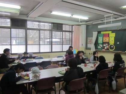 いつもの先生だけでなく,小川先生・吉谷先生,図書館司書の川島先生と一緒に食べています。