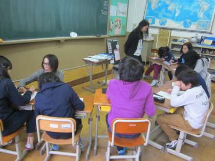 朝食の大切さの学習です。小川先生・吉谷先生,ありがとうございます。(今朝の朝食や昨日の朝食を思い出しているようです。)
