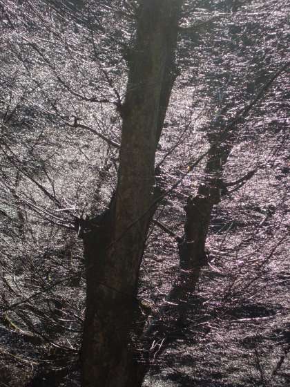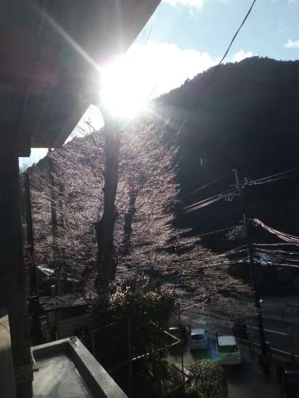 3年生の教室から「わぁ〜っきれい!!」と,歓声が聞こえてきました。見ると,すっかり葉を落とした椋の木やカエデの木についた雪解けの水滴が,太陽の光に照らされて,イルミネーションのように光り輝いていました。よく見るとなぜか赤や青い光も・・・。身近な自然の美しさを見つけることができました。
