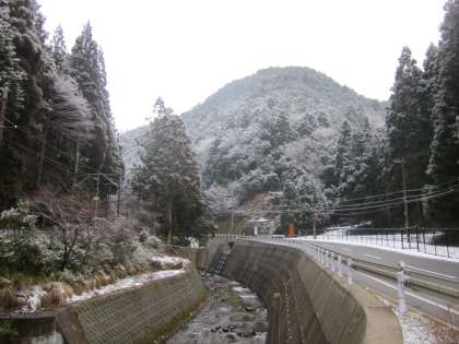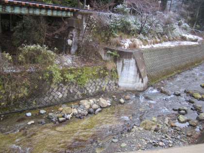 雪融け水がたくさん流れています。きれいな鞍馬川です。