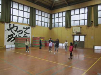 朝から元気に遊ぶ鞍馬っ子です。遊び後,うがいもしましょうね。