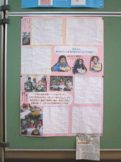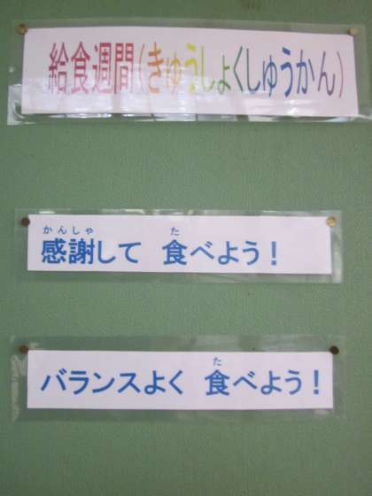 ご覧のような掲示物を,給食室前に飾っています。