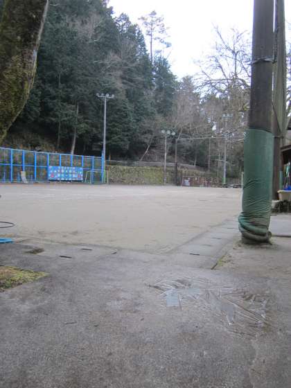 今朝の運動場は,硬く凍っています。