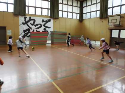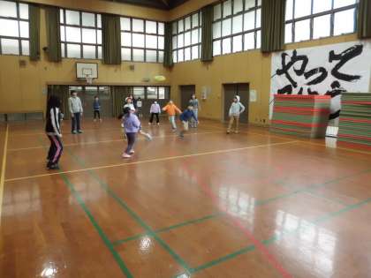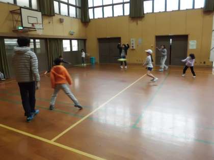 中間休みは体育館でドッジビーをして楽しみました。欠席が多くて,少ない人数でのドッジビーでしたが,楽しいひと時でした。