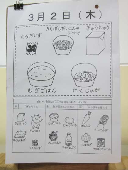今日の献立です。よく噛んで,感謝していただきましょうね。