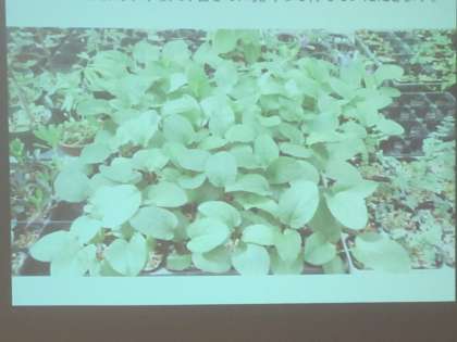 初めに多目的室で,『貴船大黄(キブネダイオウ)』そのものについて学習し,なぜ絶滅しかけているかを知りました。