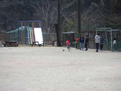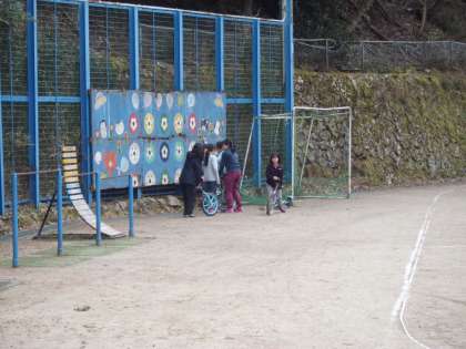 運動場で,サッカーと一輪車で元気に遊ぶ鞍馬っ子たちです。