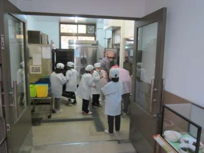 熱い食缶で,やけどをしないようにしましょう。(吉野汁)