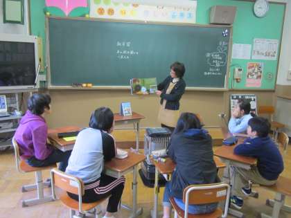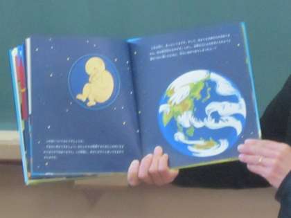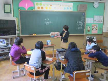 川島先生の読み聞かせです。6年生が真剣に聴いていました。