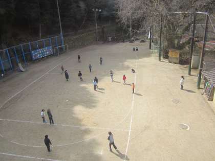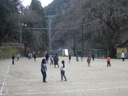 運動場をお日様が温めてくれています。だんだん乾いてきました。