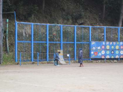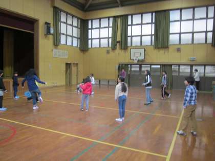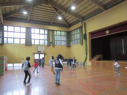 急に小雨が降ってきました。運動場から体育館に変更です。