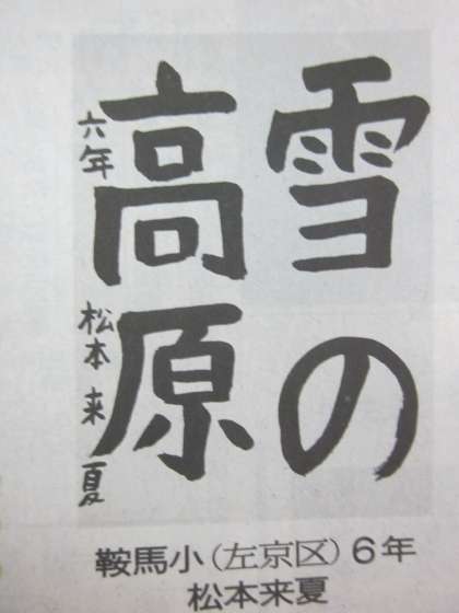 昨日の京都新聞朝刊に,本校児童の書写作品が掲載されていました。