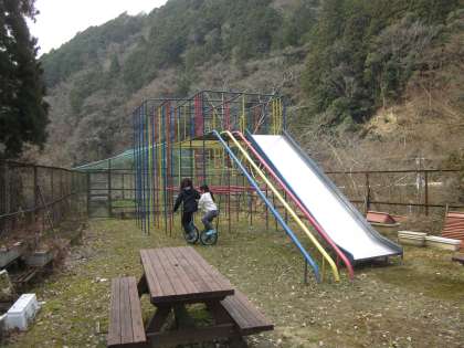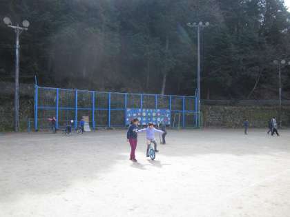 鉄棒や電柱・遊具など,一輪車の練習にはちょうどいいですね。