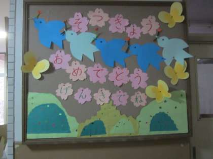 保健室前の掲示板が変わりました。来週は卒業式です。