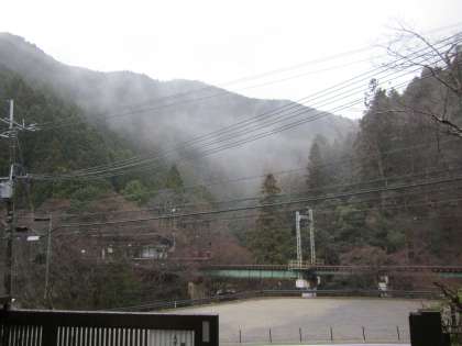 雨が昨日から降り続き,学校周辺は霧が出ています。