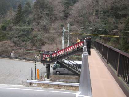 横断歩道橋に,『紅白幕』をつけています。