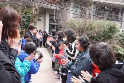 後輩たち・教職員との,最後のハイタッチです。