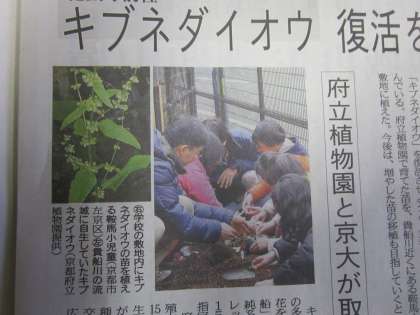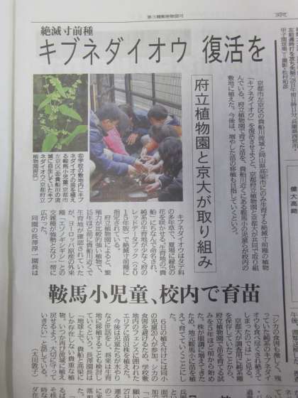 3月28日(火)の京都新聞夕刊に,『貴船大黄』の記事が掲載されていました。