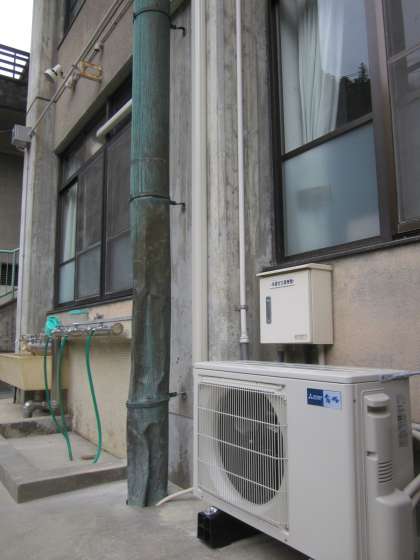 エアコン工事が終わりました。室外機が見えます。