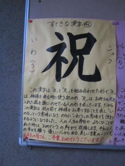 『祝入学』という字です。