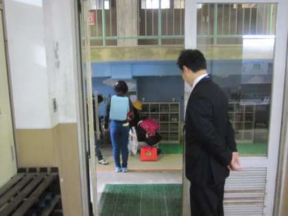 登校したら,傘は傘立てに,下靴は靴箱に入れ,上靴に履きかえます。