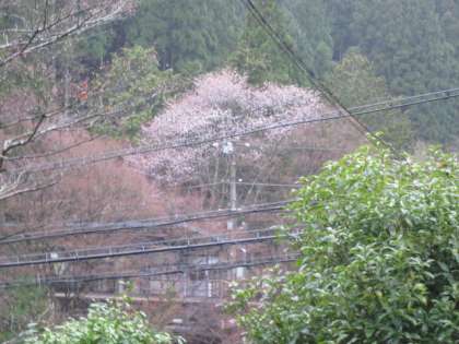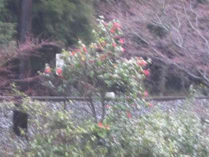 雨の中,健気に花が咲いています。風で少し散ったかもしれません。