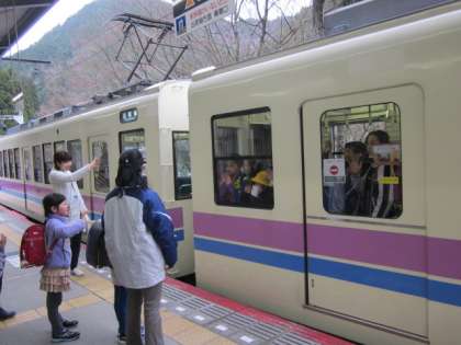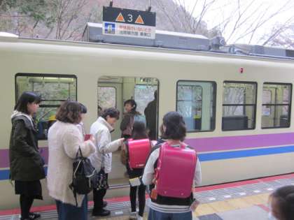 電車でお家まで帰りましょう。今日は先生方も一緒です。
