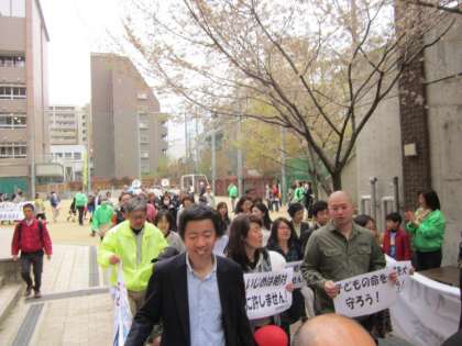 先週の土曜日,鞍馬PTA会長様とお子様と一緒に,全市PTA行事(憲法月間街頭啓発パレード)に参加してきました。